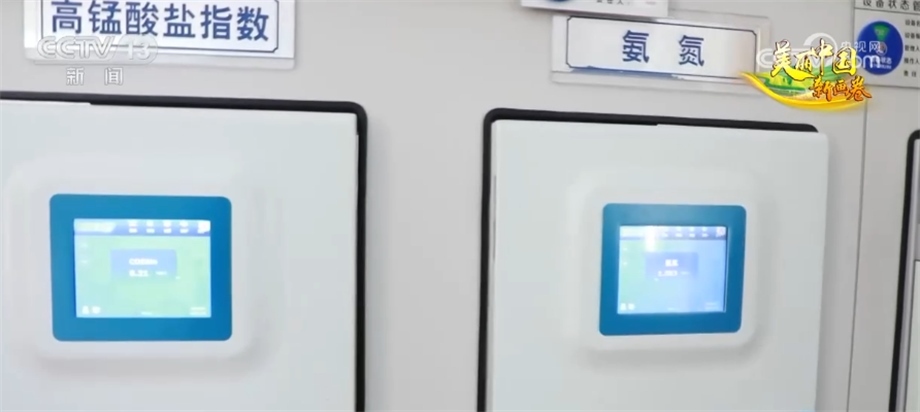 我手里拿的是剛從汾河入黃口取出的水,那么這水的指標到底怎么檢測?這里有臺儀器,每四個小時就自動對旁邊的汾河水進行采樣檢測,通過各項數(shù)據(jù)的分析來判斷汾河水的水質(zhì)是否達標。