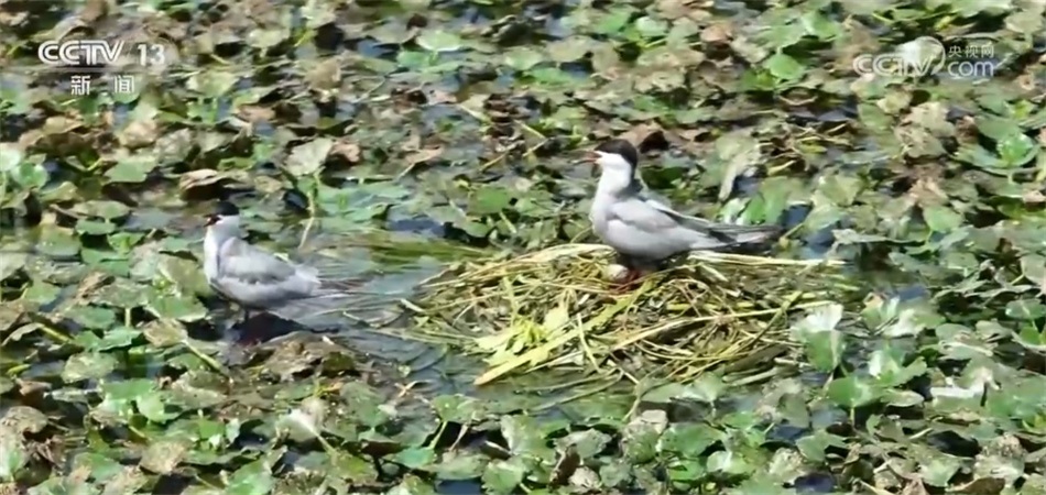 比如,兩地工作人員實(shí)現(xiàn)了聯(lián)合巡河、管護(hù)、治理。元蕩湖生態(tài)岸線的相關(guān)建設(shè),包括我所在的這個(gè)公園和步行橋也是兩地統(tǒng)一審批、接力建設(shè)起來的。目前,元蕩湖水質(zhì)已經(jīng)達(dá)到國家考核目標(biāo),生態(tài)岸線占比超過80%。在湖心的位置有一處水草聚集區(qū)域,船是不會靠近的,這是人為劃定的水上鳥兒的保育區(qū),能看見不少水鳥在那里嬉戲飛翔。鏡頭拉近,有的鳥兒已經(jīng)在這里筑巢產(chǎn)卵,把家安在了元蕩湖,水質(zhì)好不好,鳥兒最有發(fā)言權(quán)?,F(xiàn)在,元蕩湖在水系連通、河道清障、岸坡整治、水源涵養(yǎng)等方面實(shí)現(xiàn)了統(tǒng)一推進(jìn)。