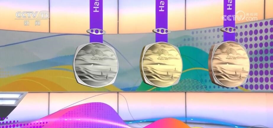 杭州亞運會獎牌名為“湖山”?!昂健睂⒘间疚幕姆叫斡耒蛨A形的獎章融為一體,正面用凸出的線條勾勒出“三面云山一面城”的杭城畫卷,湖水漣漪,山巒起伏。獎牌上方的束扣是一個帶有倒影的三孔橋,設計取自京杭大運河最南端的拱宸橋。一塊獎牌,將杭州的三處世界文化遺產:良渚、西湖、大運河都融入其中。