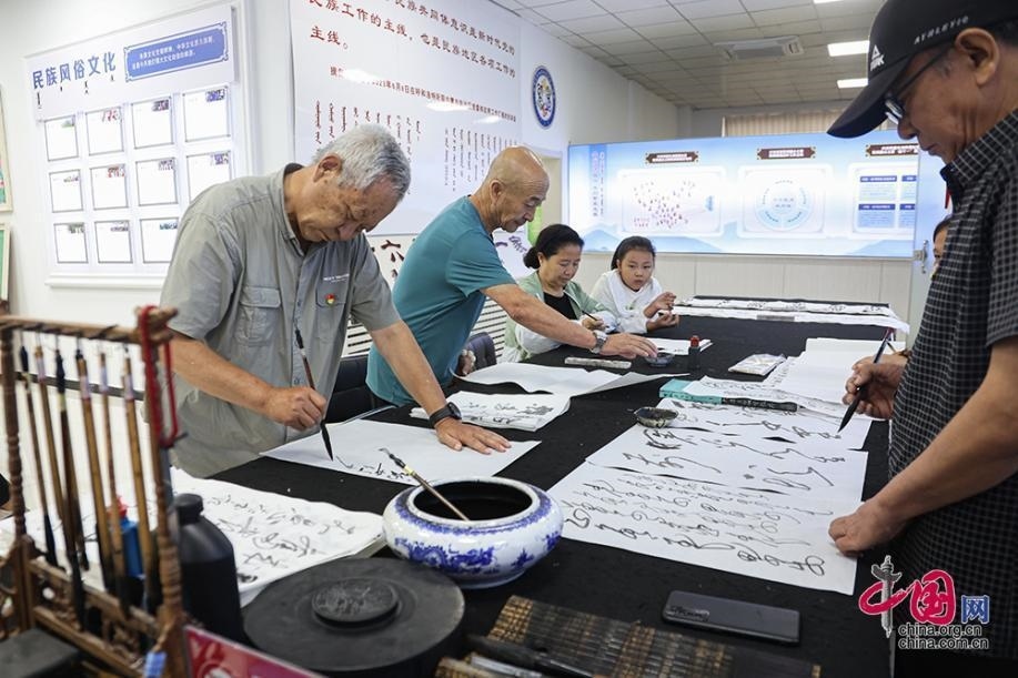 在臨潢家園社區(qū)便民服務(wù)中心內(nèi),居民們正在練習(xí)書法。中國網(wǎng)記者 倫曉璇 攝