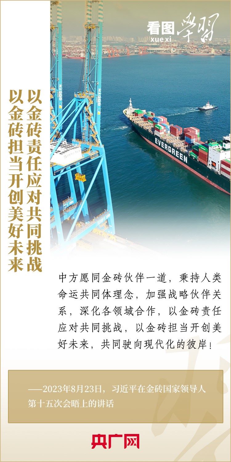 當?shù)貢r間8月23日,習近平主席出席金磚國家領導人第十五次會晤并發(fā)表重要講話,強調(diào)金磚國家要秉持開放包容、合作共贏的金磚精神,以金磚責任應對共同挑戰(zhàn),以金磚擔當開創(chuàng)美好未來。一起來學習!