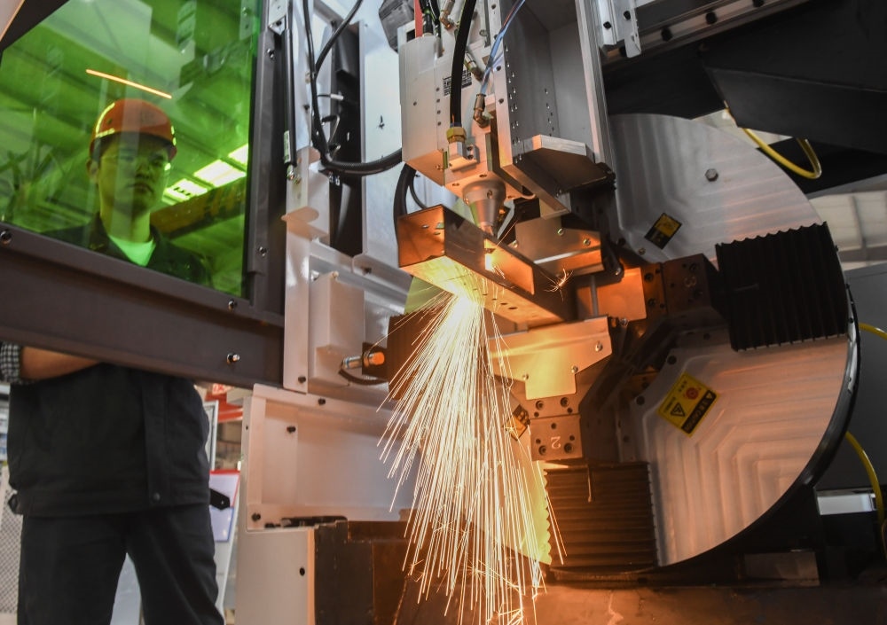 湖北武漢東湖高新區(qū),“中國光谷”。走進(jìn)華工科技產(chǎn)業(yè)股份有限公司,激光切割機(jī)行云流水般在鋼材上雕琢,噴濺出耀眼火花。公司董事長馬新強(qiáng)介紹,從首套國產(chǎn)化數(shù)控激光切割機(jī),到首臺高性能光纖激光器,華工科技已創(chuàng)下60多項(xiàng)國內(nèi)行業(yè)第一。