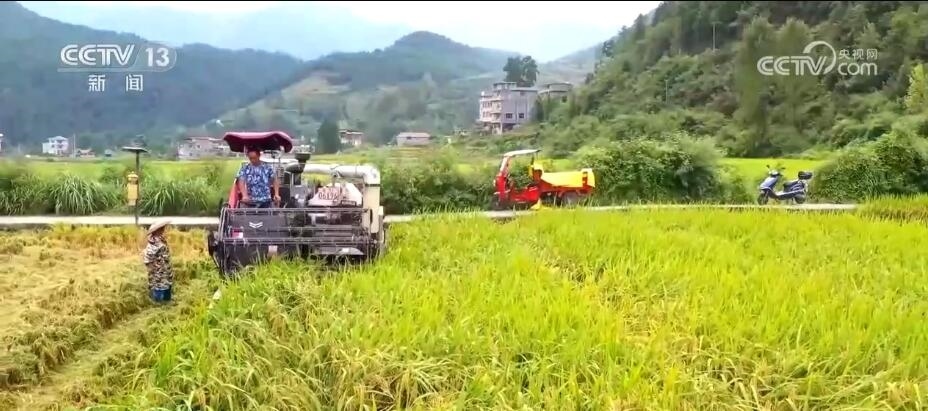 央視網(wǎng)消息:近段時(shí)間,重慶酉陽土家族苗族自治縣的26萬畝水稻陸續(xù)進(jìn)入成熟期,種植戶們駕駛著收割機(jī)穿梭在田間,搶收水稻,確保顆粒歸倉。