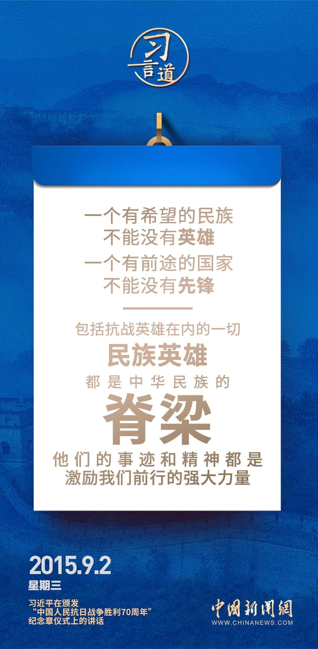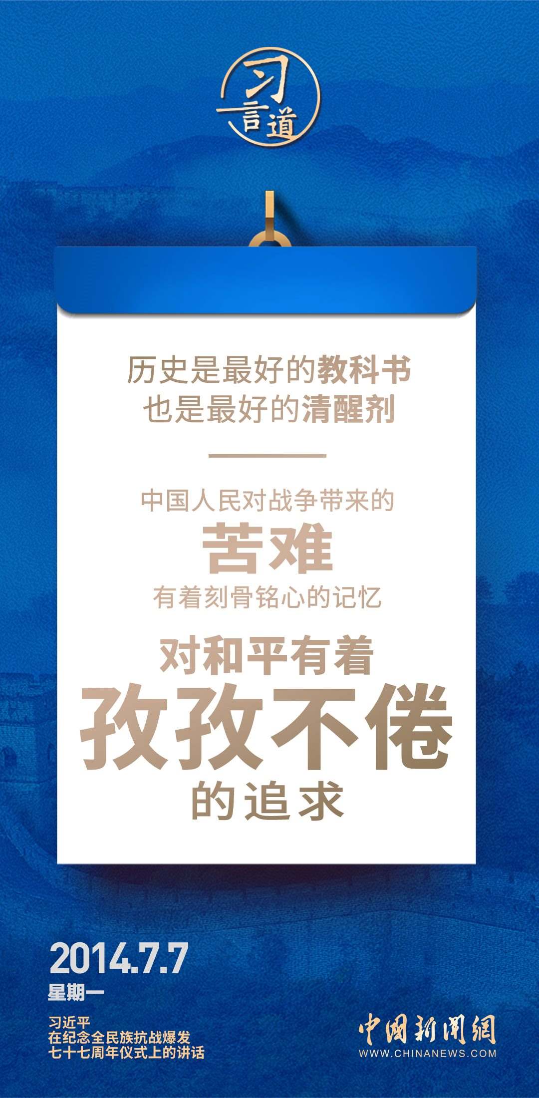 9月3日是中國人民抗日戰(zhàn)爭勝利紀念日,也是世界反法西斯戰(zhàn)爭勝利紀念日。習近平總書記關于抗戰(zhàn)的論述時刻提醒我們要銘記歷史,珍愛和平。