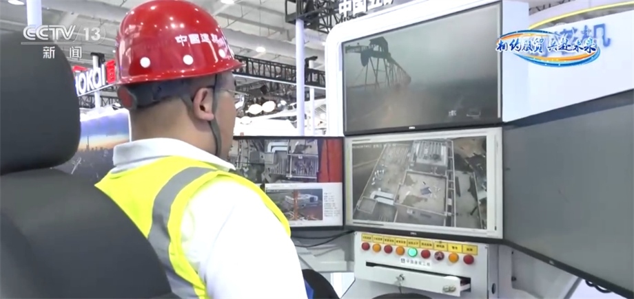 服貿(mào)會(huì)工作人員 趙晨曦:我現(xiàn)在控制的塔吊位于湖北省武漢市,距離展會(huì)現(xiàn)場(chǎng)1200公里?,F(xiàn)在我們來(lái)旋轉(zhuǎn)大臂,我們可以看到運(yùn)行過(guò)程非常流暢。接下來(lái)我們來(lái)落吊鉤,畫(huà)面也是幾乎沒(méi)有延遲。