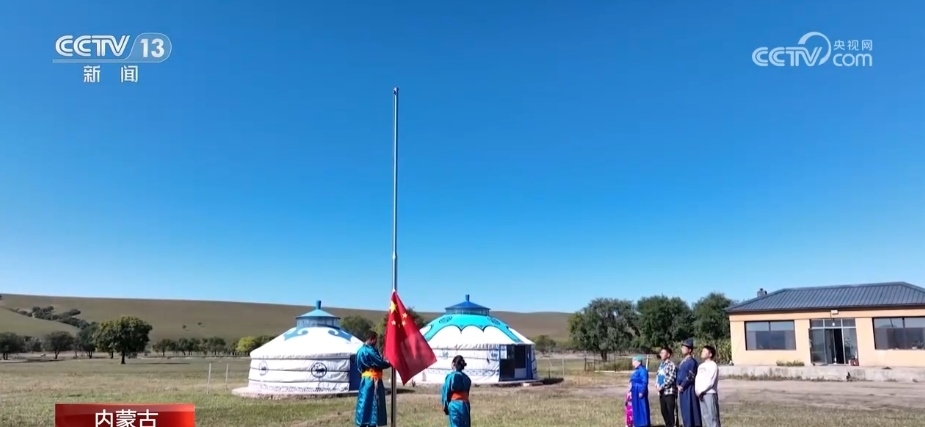 當(dāng)清晨的陽(yáng)光照亮草原,牧民霍高娃夫妻倆開始忙碌起來(lái),每年的國(guó)慶期間,他們都會(huì)自發(fā)的舉行升國(guó)旗儀式。2023年,他們還邀請(qǐng)了周邊的牧民朋友一起,參與這個(gè)莊嚴(yán)的儀式。興安盟科右前旗滿族屯滿族鄉(xiāng)是內(nèi)蒙古自治區(qū)19個(gè)民族鄉(xiāng)之一,這里的牧民世代生活在邊境線上。2022年,滿族屯滿族鄉(xiāng)為156戶邊境牧民,修建了規(guī)范儀式標(biāo)準(zhǔn)的升旗臺(tái),讓五星紅旗冉冉升起在祖國(guó)北疆的邊境線上。