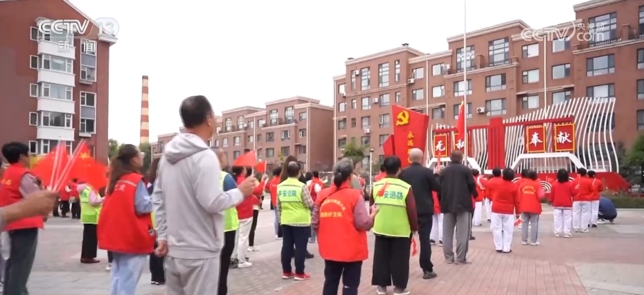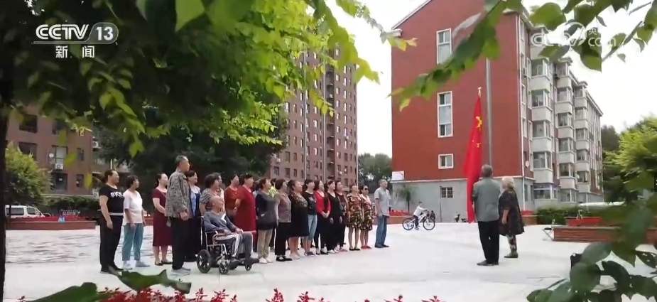 在吉林長(zhǎng)春的一個(gè)居民小區(qū),這里正在進(jìn)行升旗前的訓(xùn)練。從2012年開始,小區(qū)每周都會(huì)舉行升旗儀式,最初的發(fā)起者是小區(qū)居民張秀英和她的老伴梁金華。