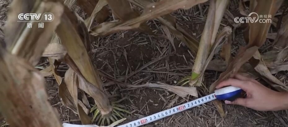 我們扒開田里的玉米看一下,可以看到玉米色澤金黃,而且顆粒飽滿,這說(shuō)明玉米的品質(zhì)是非常好的。除此之外,這個(gè)玉米品種還有一個(gè)特點(diǎn)就是耐密。一般的玉米株距在28—30cm,我們拿尺子測(cè)量一下,玉米株距大約在24cm,相對(duì)一般玉米比較小,這樣每畝地種植的玉米株數(shù)更多,產(chǎn)量也就相對(duì)較高。