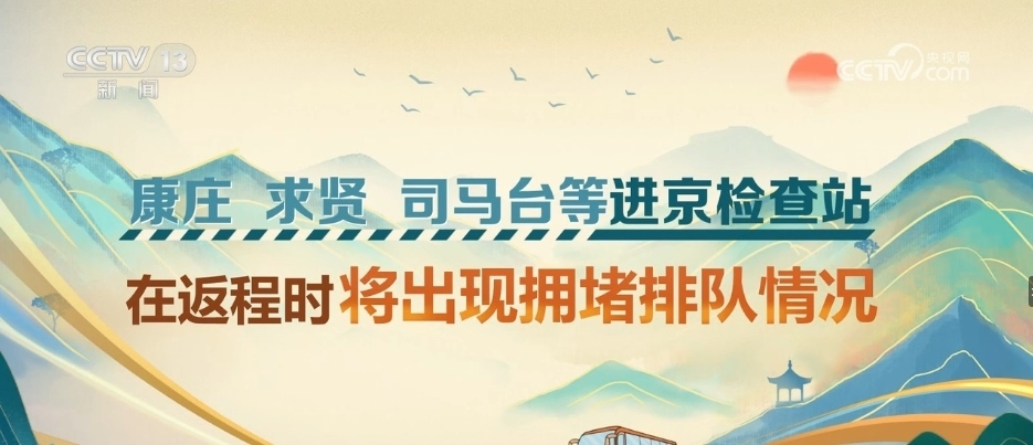 為應對假期返程客流,交通部門加強組織做好地面交通銜接和保障。北京交通部門預計,10月6日10時—22時,京平高速北務服務區(qū)、京港澳高速竇店服務區(qū)進京方向車流量大??登f、求賢、司馬臺等進京檢查站在返程時將出現(xiàn)擁堵排隊情況。