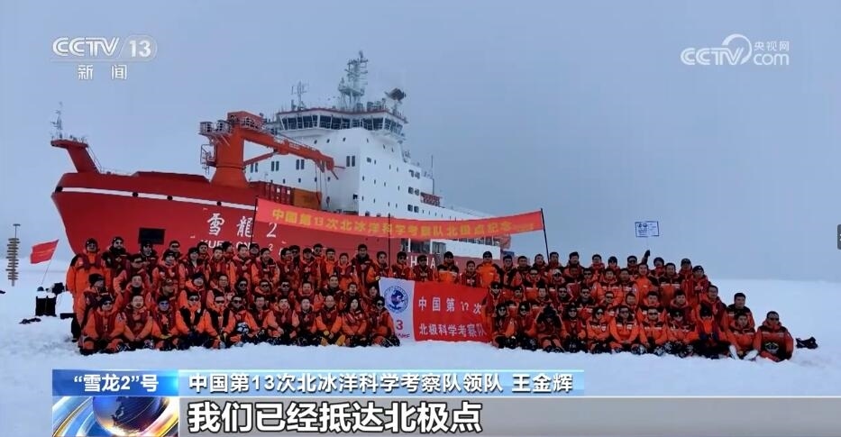 五分鐘后,“雪龍2”號順利抵達(dá)北極點(diǎn)。