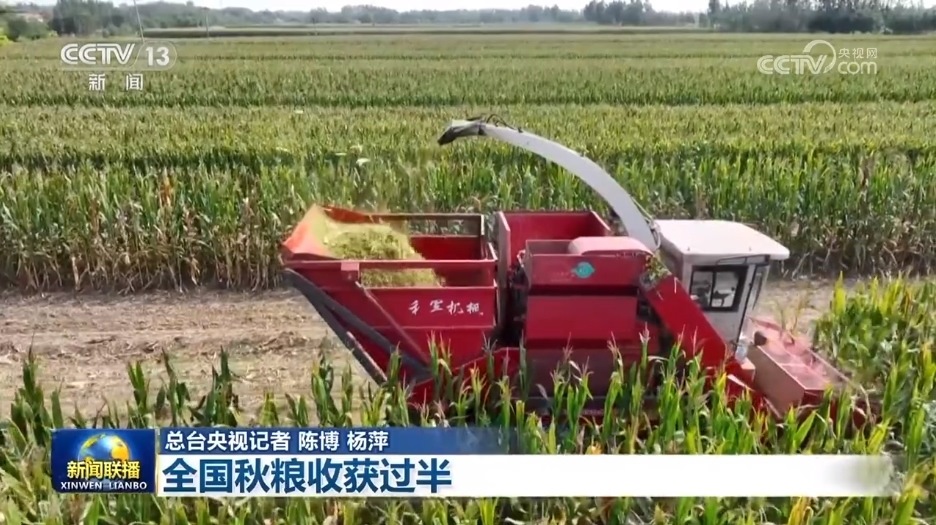 央視網(wǎng)消息(新聞聯(lián)播):農(nóng)業(yè)農(nóng)村部最新農(nóng)情調(diào)度顯示,眼下全國秋糧收獲過半,主產(chǎn)區(qū)已進入收獲高峰。