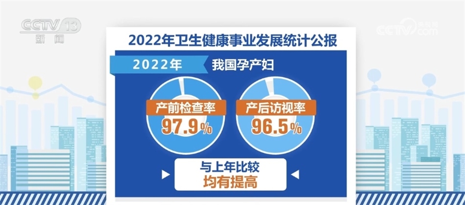 在婦幼健康方面,2022年我國孕產(chǎn)婦產(chǎn)前檢查率97.9%,產(chǎn)后訪視率96.5%。與上年比較,產(chǎn)前檢查率和產(chǎn)后訪視率均有提高。2022年全國住院分娩率為99.94%,基本實現(xiàn)全部住院分娩。據(jù)全國婦幼健康監(jiān)測,2022年,我國5歲以下兒童死亡率6.8‰,嬰兒死亡率4.9‰,全國孕產(chǎn)婦死亡率為15.7/10萬,均有不同程度下降。
