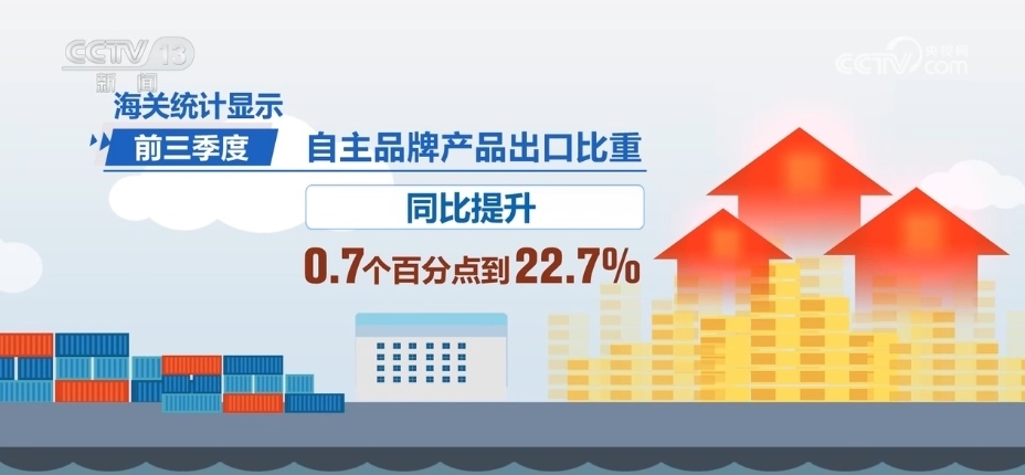 海關(guān)統(tǒng)計顯示,前三季度,我國民營企業(yè)月度進出口增速高于整體,自主品牌產(chǎn)品出口比重同比提升0.7個百分點到22.7%。