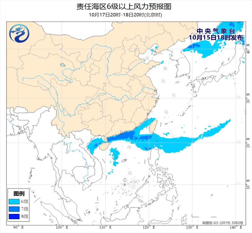 10月18日夜間至22日白天,受冷空氣影響,渤海、渤海海峽、黃海大部海域、東海大部海域、臺(tái)灣海峽、巴士海峽、南海北部和中部海域、北部灣、瓊州海峽將有5~7級(jí)、陣風(fēng)8級(jí)的東北風(fēng)或偏北風(fēng),其中臺(tái)灣海峽的部分海域風(fēng)力可達(dá)8級(jí)、陣風(fēng)9級(jí)。