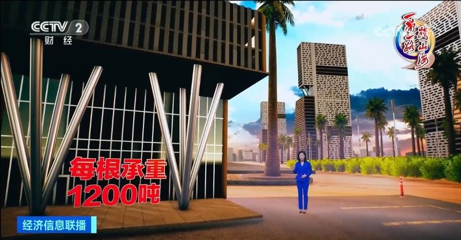 包括標(biāo)志塔在內(nèi),中國(guó)企業(yè)在中央商務(wù)區(qū)共承接了20個(gè)高層建筑單體及配套市政工程。20棟高樓間,我們還能看見(jiàn)不少這樣的“樹(shù)形柱”,四根向上斜伸的柱子,像一個(gè)倒立的金字塔。我身邊就是這種樹(shù)形柱,每根柱子承受1200噸重量,相當(dāng)于在上面站立150頭成年大象,受力卻只集中于底部一點(diǎn),中國(guó)團(tuán)隊(duì)歷經(jīng)3個(gè)多月的精密計(jì)算與人工調(diào)試,讓這個(gè)專屬于埃及的設(shè)計(jì)成功澆筑,用堅(jiān)實(shí)的技術(shù)托起了這座未來(lái)之城。