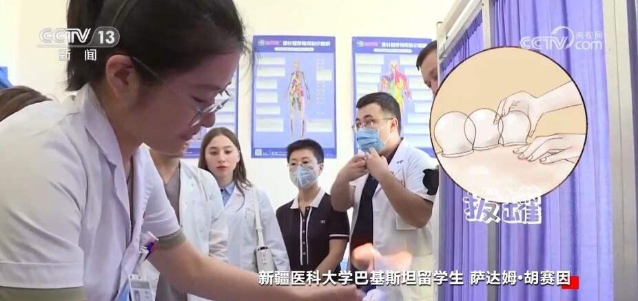 新疆醫(yī)科大學巴基斯坦留學生 薩達姆?胡賽因:“一帶一路”以后,對我們的老百姓也有很大的幫助,主要是中國的醫(yī)生過去。我是前面胳膊拉傷,中醫(yī)醫(yī)生就給我揉一揉,拍我的這個肩膀胳膊,拍了差不多200次,后面給我拔罐兒,做了一次,我基本上就沒疼了。我覺得這個很神奇。