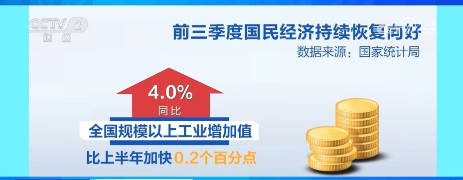 工業(yè)生產(chǎn)恢復(fù)加快,裝備制造業(yè)較快增長。前三季度,全國規(guī)模以上工業(yè)增加值同比增長4.0%,比上半年加快0.2個百分點。