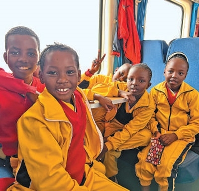 蒙內(nèi)鐵路是中國與肯尼亞共建“一帶一路”標志性工程。圖為肯尼亞學生高興地乘坐列車出行。本報記者 張志文攝