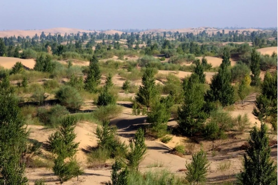 習近平主席高度重視荒漠化防治,指出“人類要更好地生存和發(fā)展,就必須防沙治沙?!敝袊亲钤绾炗啞堵?lián)合國荒漠化防治公約》的國家之一,堅持依靠科技創(chuàng)新破解荒漠化防治和綠色發(fā)展難題,推動防沙治沙與沙產(chǎn)業(yè)協(xié)同發(fā)展。近十年來,中國完成治沙面積2033萬公頃,探索形成了庫布其治沙模式等一批可復制、可推廣的荒漠化防治經(jīng)驗模式。