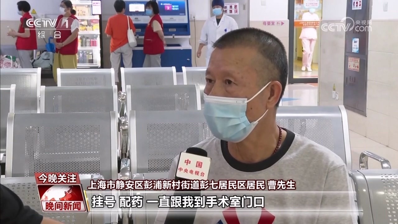 上海市靜安區(qū)彭浦新村街道彭七居民區(qū)居民 曹先生:掛號(hào),配藥,一直跟我到手術(shù)室門口,(術(shù)后)推著輪椅送我到病房,真的就像我自己的親人一樣在照顧我,從頭到尾都(是)這樣。