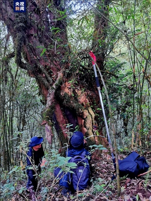 ·云南省臨滄瀾滄江省級自然保護區(qū)鳳慶片區(qū)發(fā)現(xiàn)一株野生喜馬拉雅紅豆杉,預估樹齡達上千年。