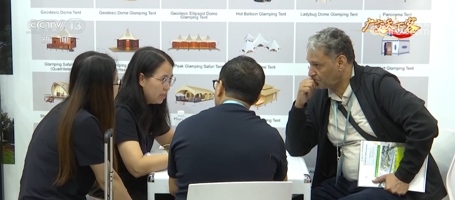 這家營(yíng)地帳篷生產(chǎn)企業(yè)是第一次參加廣交會(huì)的新品首秀活動(dòng),他們展示的是各式酒店帳篷。