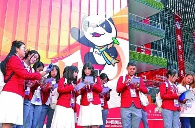 11月2日,志愿者在進(jìn)博會(huì)場(chǎng)館內(nèi)的黨群服務(wù)站工作。新華社發(fā)
