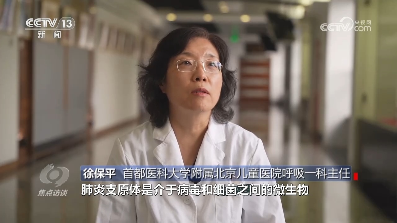 首都醫(yī)科大學附屬北京兒童醫(yī)院呼吸一科主任徐保平:“肺炎支原體是介于病毒和細菌之間的微生物,主要通過呼吸道感染,主要臨床表現(xiàn)是發(fā)熱、咳嗽,在病初的時候表現(xiàn)是劇烈的、陣發(fā)性的、刺激性的干咳?!?/p>