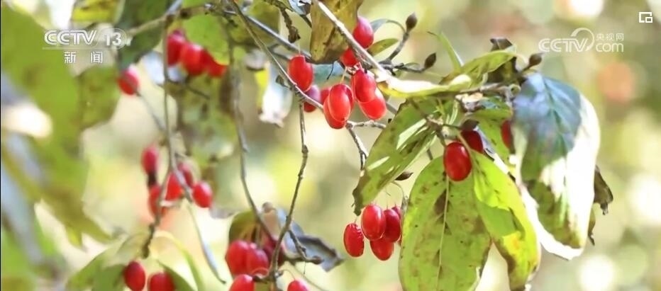 河南西峽:果實綴枝頭 22萬畝山茱萸迎采收