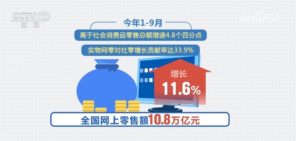 ?????? 據(jù)了解,我國零售市場(chǎng)的電商滲透率逐年走高,今年1—9月,全國網(wǎng)上零售額增長11.6%,高于社會(huì)消費(fèi)品零售總額增速4.8個(gè)百分點(diǎn),實(shí)物商品網(wǎng)上零售對(duì)社會(huì)消費(fèi)品零售增長貢獻(xiàn)率達(dá)33.9%。