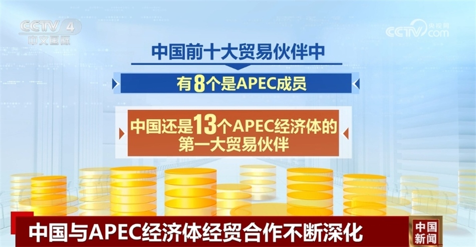 央視網(wǎng)消息:亞太經(jīng)合組織第三十次領(lǐng)導(dǎo)人非正式會(huì)議即將召開,記者從商務(wù)部等部門了解到,近年來,中國(guó)與其他20個(gè)APEC經(jīng)濟(jì)體不斷深化經(jīng)貿(mào)合作,為建設(shè)亞太經(jīng)濟(jì)持續(xù)貢獻(xiàn)中國(guó)力量。