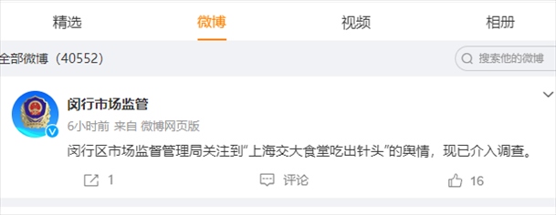 ·上海交通大學(xué)回應(yīng)“食堂飯菜里吃出1.5厘米針頭”:給豬打疫苗的針斷在骨頭里。上海閔行區(qū)市場(chǎng)監(jiān)督管理局已介入調(diào)查。