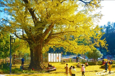 2023年11月25日,安徽安慶,響腸鎮(zhèn)請(qǐng)水寨村千年銀杏樹(shù)披“金甲”,進(jìn)入最佳觀(guān)賞期,吸引游客前來(lái)游玩賞景。
