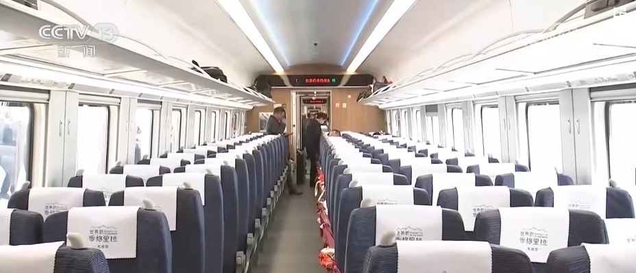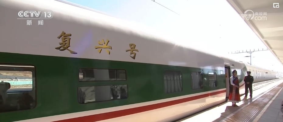 總臺(tái)記者 劉文杰:這是一款特別針對(duì)滇藏鐵路沿線高原、高寒環(huán)境設(shè)計(jì)的動(dòng)車(chē)組。整列車(chē)的涂裝是以“中國(guó)紅”為腰帶、以“國(guó)槐綠”為窗帶,用“長(zhǎng)城灰”進(jìn)行點(diǎn)綴,整體外觀大氣優(yōu)美。
