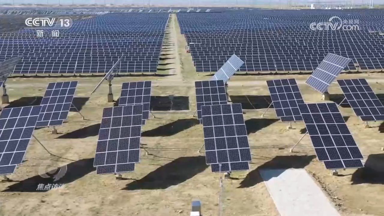 上萬只羊淹沒在上千萬塊光伏發(fā)電板中安靜地吃草,誰能想到,在這安靜之下,在這片藍(lán)色海洋之下,巨大的能量以電力的形式源源不斷產(chǎn)生,能量之大,年發(fā)電量足夠滿足340萬個(gè)家庭全年用電。