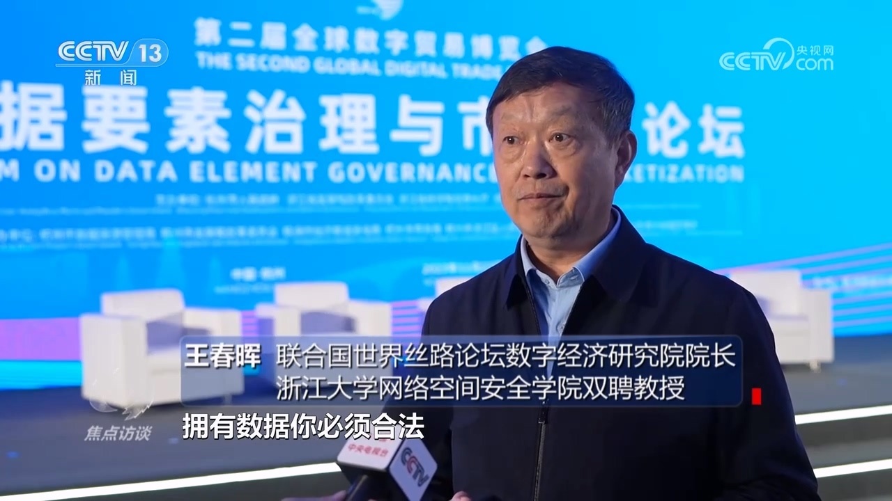 聯(lián)合國(guó)世界絲路論壇數(shù)字經(jīng)濟(jì)研究院院長(zhǎng)、浙江大學(xué)網(wǎng)絡(luò)空間安全學(xué)院雙聘教授王春暉:“一個(gè)是法律層面的清晰,一個(gè)是經(jīng)濟(jì)方面的清晰,就是擁有數(shù)據(jù)必須合法,不能違法擁有數(shù)據(jù),擁有數(shù)據(jù)合法的情況下,可以加工利用,發(fā)揮對(duì)數(shù)據(jù)的整個(gè)價(jià)值的利用。”