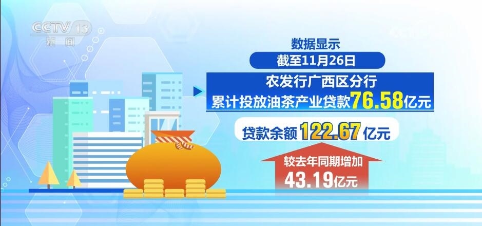 數據顯示,截至11月26日,農發(fā)行廣西區(qū)分行累計投放油茶產業(yè)貸款76.58億元,貸款余額122.67億元,較去年同期增加43.19億元。