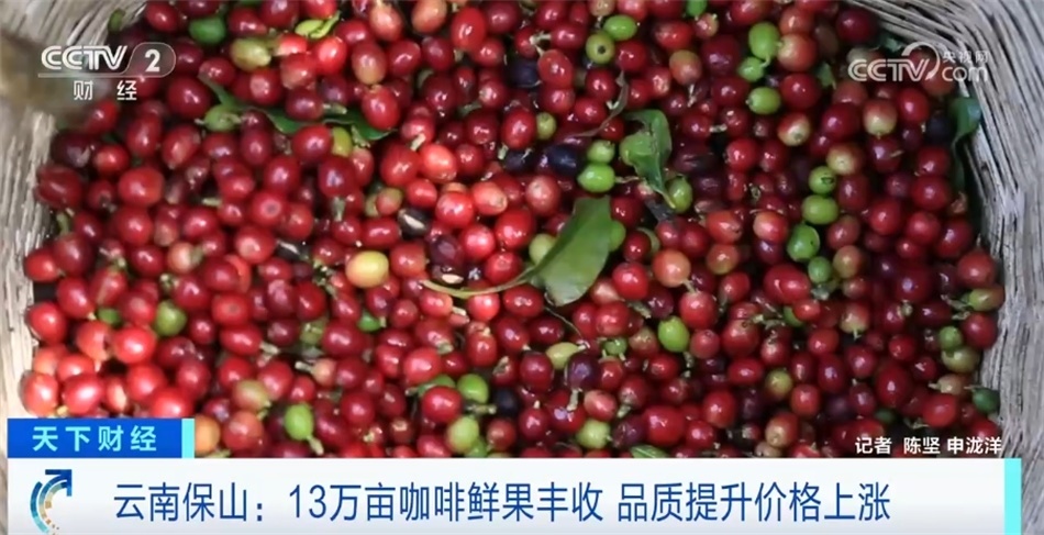 云南的咖啡產(chǎn)量占到全國98%,這些天,在保山市,13萬畝咖啡鮮果陸續(xù)迎來采收。隨著咖啡品質(zhì)不斷提升,價格也呈現(xiàn)連年上漲的趨勢。