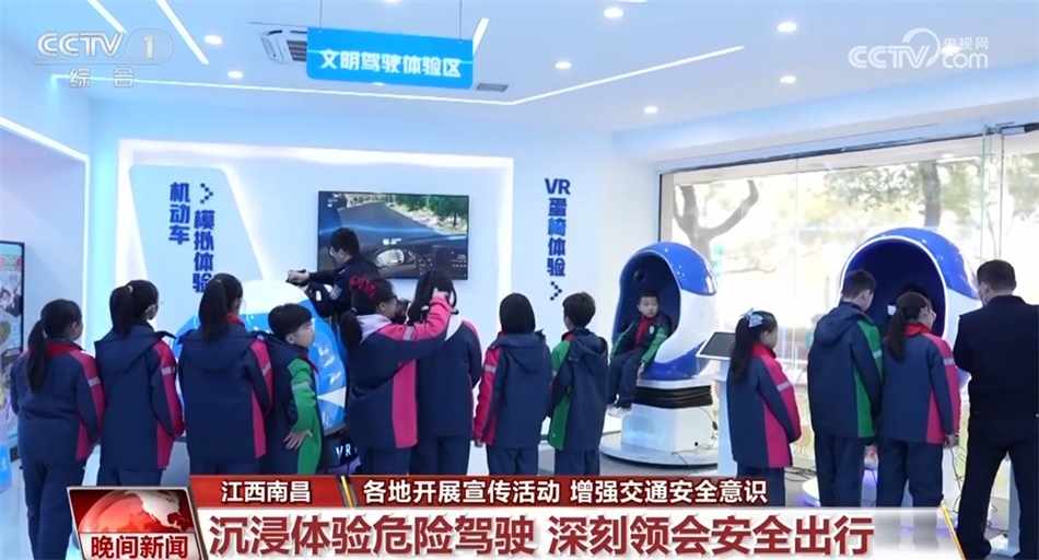 在江西南昌公安交通治理體驗中心,來自南昌市郵政路小學(xué)的同學(xué)們在民警的帶領(lǐng)下,開展了一堂別開生面的交通安全課。大家戴上VR設(shè)備,通過機(jī)動車模擬駕駛、交通事故模擬裝置等,沉浸式體驗了酒駕醉駕、超速等交通違法行為的場景?;蝿拥淖谓o同學(xué)們帶來了事故撞擊的震感,旋轉(zhuǎn)的設(shè)備更是讓同學(xué)們身臨其境地感受到酒后駕駛的眩暈。