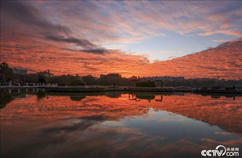 2023年12月7日清晨,云南曲靖上空出現(xiàn)火燒云景觀。