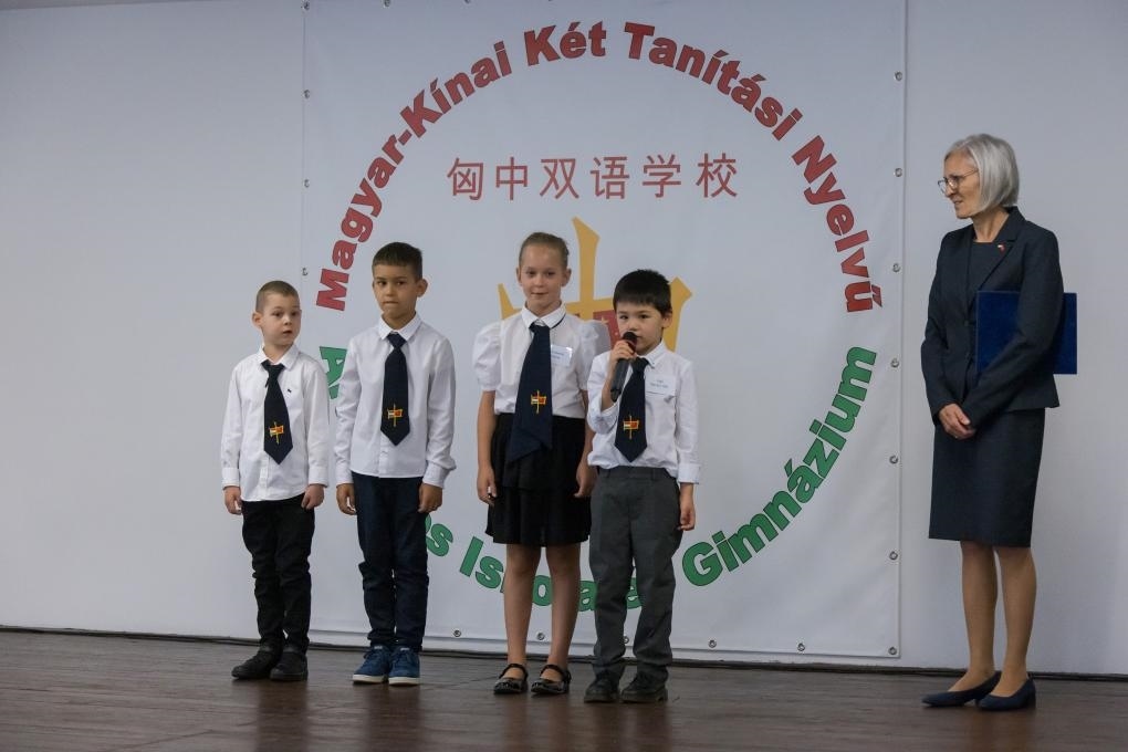 2022年9月1日,在匈牙利首都布達佩斯,學(xué)生們參加匈中雙語學(xué)校新學(xué)年開學(xué)典禮。