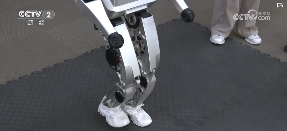 在北京另外一家人形機器人實驗室,記者看到,工程師們正在對這個月軟硬件升級后的人形機器人做行走訓練。