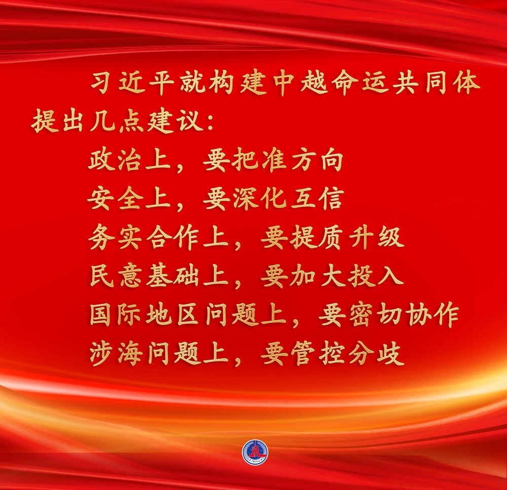 兩位總書記都認(rèn)為,中越作為友好近鄰,理想相同,理念相通。作為好鄰居、好伙伴、好兄弟、好同志,中越構(gòu)建具有戰(zhàn)略意義的命運(yùn)共同體具有天時(shí)、地利、人和的獨(dú)特優(yōu)勢。雙方應(yīng)該繼承老一輩領(lǐng)導(dǎo)人締結(jié)的傳統(tǒng)友誼,共同努力構(gòu)建命運(yùn)共同體,走好各自的現(xiàn)代化道路,實(shí)現(xiàn)互利共贏、美美與共,造福兩國人民,也為地區(qū)和平與繁榮作出積極貢獻(xiàn)。