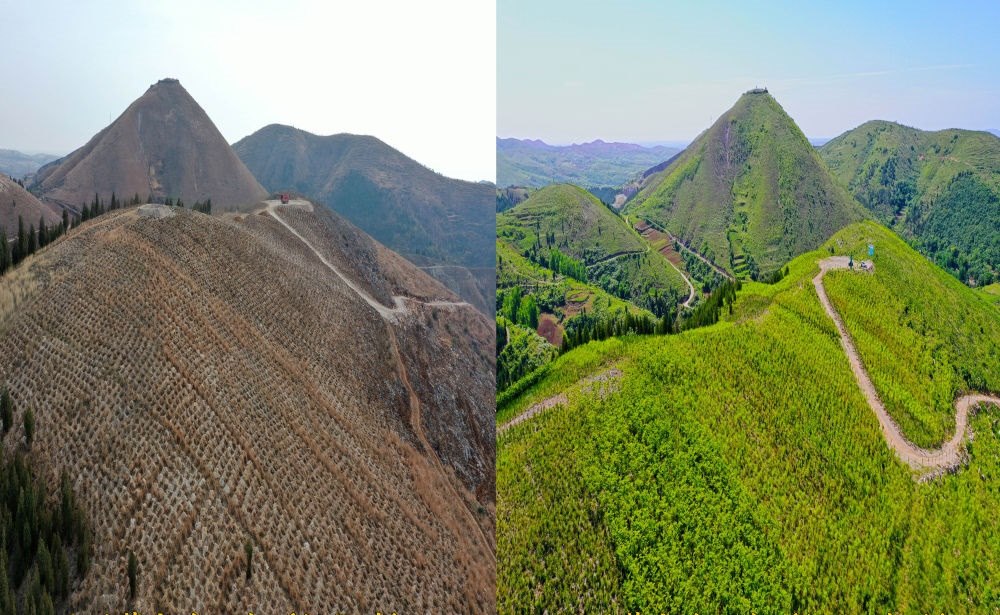 葛家溝國儲林基地(2020-2022)前后對比圖(資料照片)。(淅川縣委宣傳部供圖)