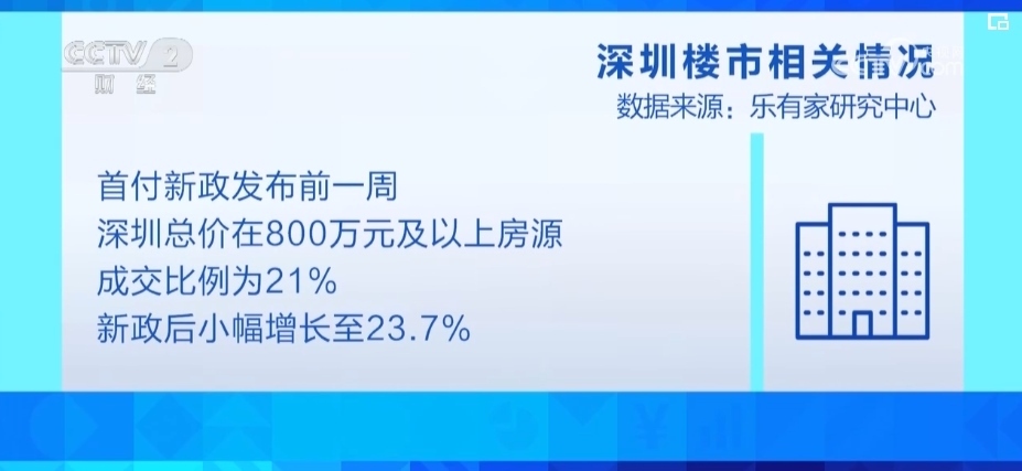 樂(lè)有家研究中心監(jiān)測(cè)數(shù)據(jù)顯示,首付新政發(fā)布前一周,深圳總價(jià)在800萬(wàn)元及以上房源的成交比例為21%,新政后這一比例小幅增長(zhǎng)至23.7%。