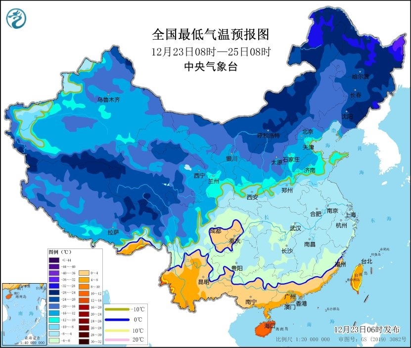 央視網(wǎng)消息:中央氣象臺(tái)12月23日06時(shí)發(fā)布低溫藍(lán)色預(yù)警:預(yù)計(jì),12月23日08時(shí)至25日08時(shí),內(nèi)蒙古河套地區(qū)、陜西北部、華北西部和中南部、東北地區(qū)南部、黃淮及其以南大部地區(qū)日最低氣溫或平均氣溫較歷史同期偏低5℃以上,其中,內(nèi)蒙古河套地區(qū)、遼寧北部、河北中南部、江南大部、華南北部等地的部分地區(qū)偏低7℃以上,最低氣溫0℃線將位于貴州西南部至華南北部一帶。