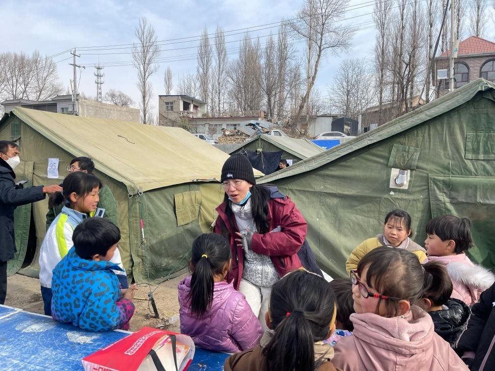 21日上午,馮小霞和24名同伴就從與積石山縣毗鄰的廣河縣抵達(dá)災(zāi)區(qū),開展志愿服務(wù)。地震發(fā)生后,和馮小霞類似,來自多地的志愿者化身“帳篷城”里的“孩子王”,為大家開設(shè)了繪畫、文化課程輔導(dǎo)、防災(zāi)救災(zāi)知識等內(nèi)容的志愿服務(wù)。