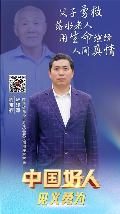 程寶存,男,1953年8月生;程建軍,男,1978年6月生。二人為父子關系,系陜西省商洛市丹鳳縣武關鎮(zhèn)梅莊村村民。2021年9月,父子兩人協力救助落水老人,父親程寶存不幸被水沖走獻出了寶貴生命。程建軍說:“這件事誰遇到都會去做的,我相信我爸也不會后悔自己的選擇。”