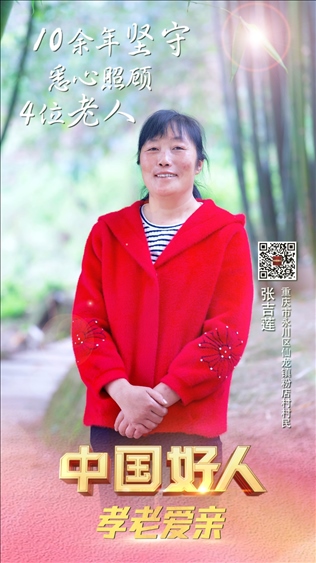 張吉蓮,女,1973年12月生,重慶市永川區(qū)仙龍鎮(zhèn)粉店村村民。1996年,張吉蓮與仙龍鎮(zhèn)張家村的凡時德結婚。在相繼為父親和奶奶養(yǎng)老送終后,張吉蓮將3位年邁體弱的叔叔接到自己家里照顧。在她的悉心照料下,幾位老人衣食富足,生活幸福。鄰里鄉(xiāng)親受其影響,逐漸形成了孝老愛親、守望相助的文明鄉(xiāng)風。