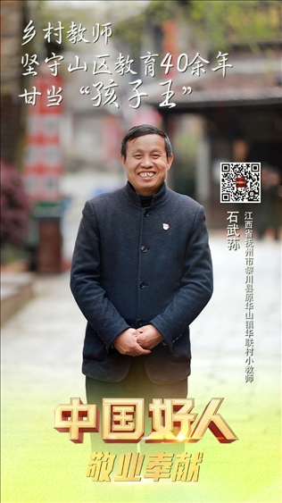 石武蓀,男,1962年5月生,中共黨員,江西省撫州市黎川縣原華山鎮(zhèn)華聯村小教師。參加工作40多年來,他扎根偏遠山區(qū),數次放棄進城機會,默默堅守在離縣城30多公里的大山里,把自己的青春年華無私地奉獻給了山區(qū)的百姓和孩子們。